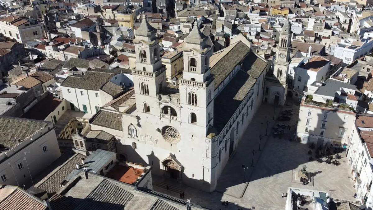 L’occhio spazia a 360° abbracciando con lo sguardo Murgia Sgolgore, l’immenso centro abitato che si sviluppa sulla collina, su cui svettano i campanili della cattedrale, delle chiese minori insieme ai cupoloni di S. Domenico e S. Teresa.