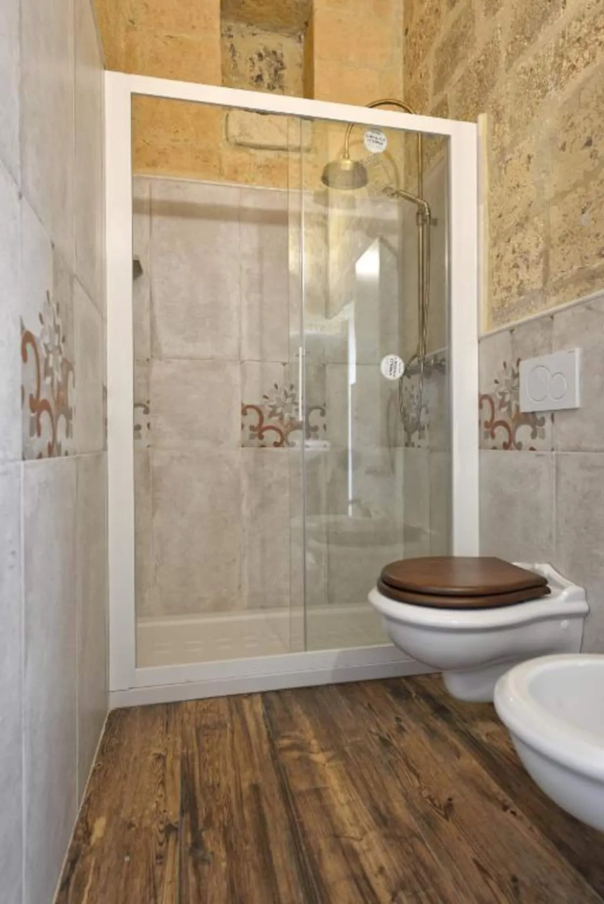Camera spaziosa di circa 35 m², ideale per famiglie o piccoli gruppi. Dispone di un letto matrimoniale alla francese, due letti singoli e possibilità di culla. Bagno privato con doccia, aria condizionata, frigo, vista corte e giardino.